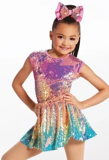 - Ombré rainbow sequin skater dress