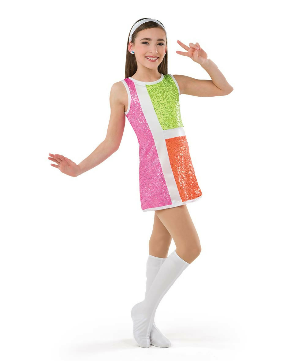 SEQUIN COLOR BLOCK DRESS. WHITE HEADBAND INCLUDED. (SPATS NOT INCLUDED)