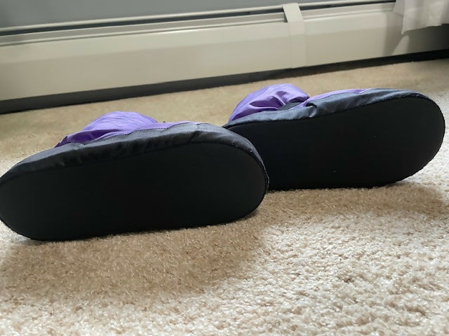 Women's size Small, very gently used warm-up booties in terrific condition. These booties are very warm with 100% polyester filling. All velcro straps in very good shape. Rich purple/grape color with black trim. Measures 10-1/4 inches on outside bottom of boot from toe to heel.