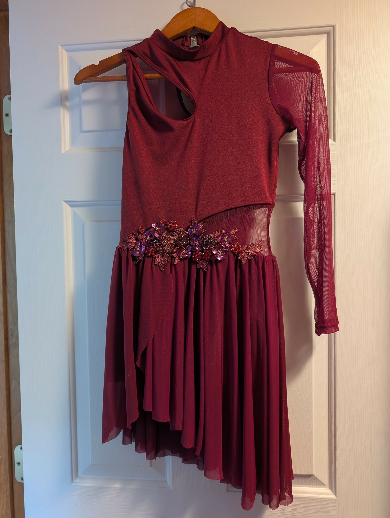 From an elite collection of performance ensembles by Elisse this stunning one sleeve dress combines ferocity and femininity. A versatile costume that will enhance any dance routine!