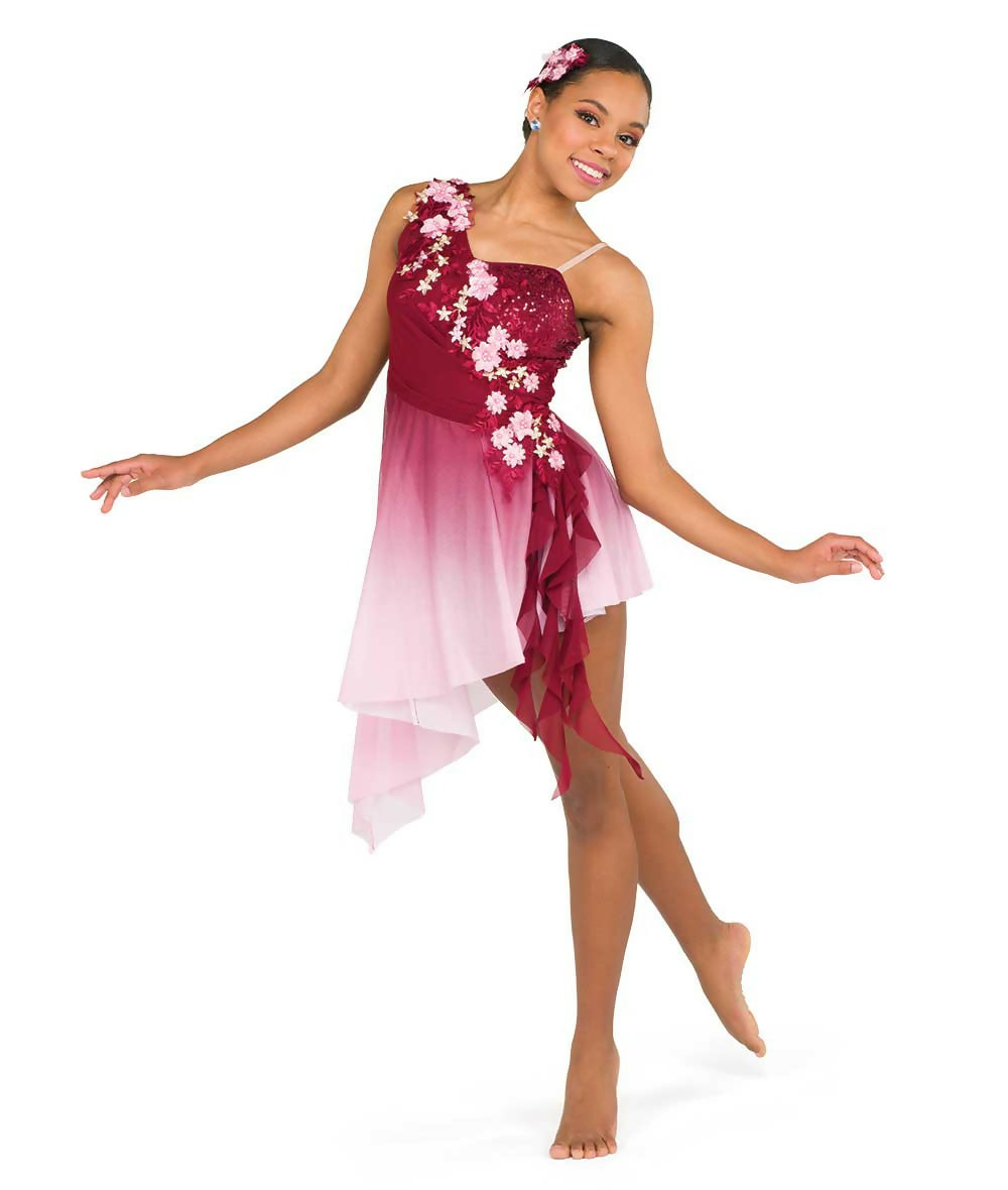 BURGUNDY OMBRE LEO WITH ATTACHED SKIRT. HAIR BARRETTE INCLUDED.